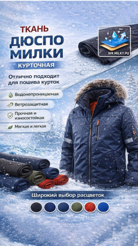 Ткань курточная Дюспо WR Милки 240Т 80+/-5гр.м2 рул 100м...